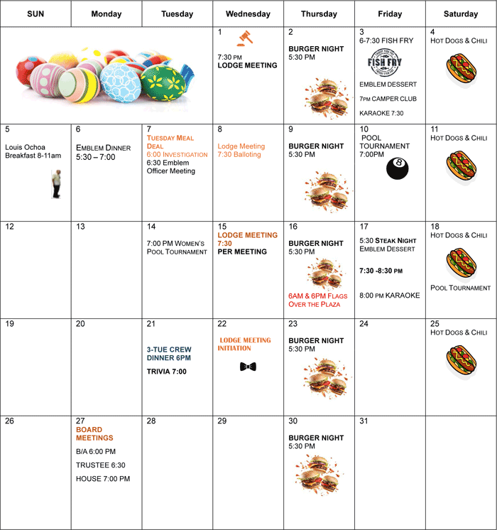 LODGE CALENDAR
